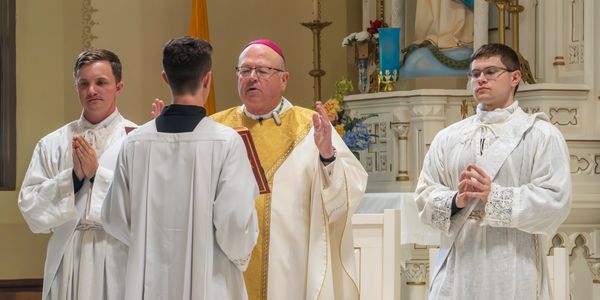The Rite of Candidacy Mass was hosted at St. Joseph Catholic Church in Andale. Bishop Carl Kemme was the principal celebrant. The Mass marked the acceptance of Alex James Klein & Caleb Jonathan Garner into the pursuit of Holy Orders-either diaconate of priesthood.